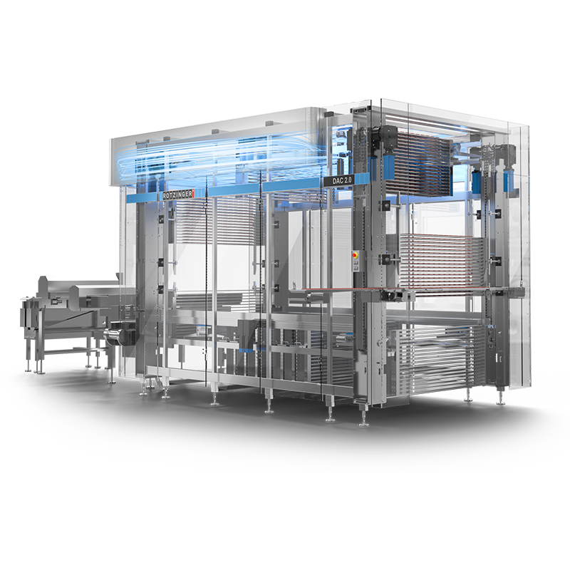 Configuration, design and manufacture of state-of-the-art facilities, transfer of pastry products from the process, buffering, transport, alignment or grouping of the products and subsequent feeding to individual packaging machines. Grouping of wrapped products and preparation of a shelp-ready wrapping. Whether a single-belt operation or a multi-branch distribution system with grouping, filling of blisters and product flow regulation, the Demaurex, Rotzinger, Transver team will design the most efficient layout for you!